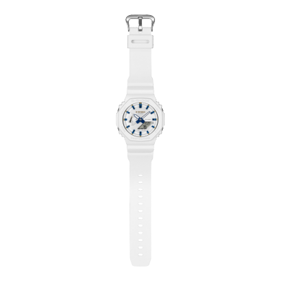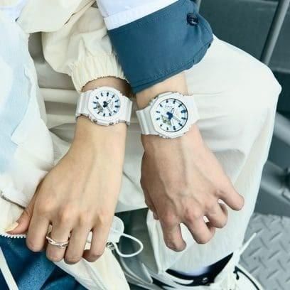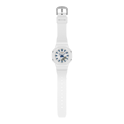 恋人たちに贈るクリスマス限定ペア「Gプレゼンツラバーズコレクション」より、2025年のクリスマスシーズンを彩るスペシャルモデルです。クリスマスツリーのオーナメントをイメージしたホワイト×ブルーの爽やかなカラーで、普段使いできるデザインです。ダイアルに透明蒸着を施し質感を高め、インデックスにはブルー蒸着を施し、シルバー・ゴールドの差し色がクリスマスの華やかさを演出。マットホワイトのベゼルとバンドに、G-SHOCKロゴおよびアワーマーカーのゴールドが特別感を添えます。裏蓋にはラバーズコレクションのシンボル「天使&悪魔」を刻印。大切な人との絆を見守ります。スペシャルパッケージはホワイト×ブルーを基調とした特別感のある仕様に仕上げました。クリスマスの贈り物として、大切な人と共に身に着けたいモデルです。
