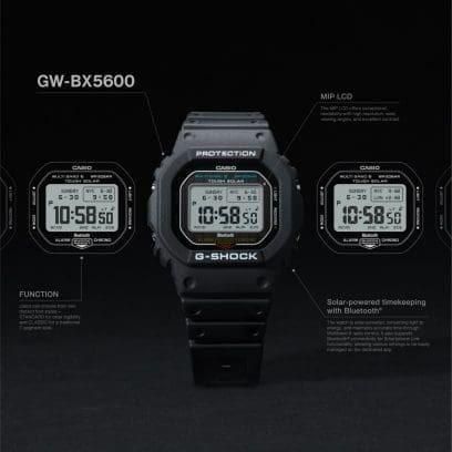優れた視認性を持つMIP 液晶を採用し、タフソーラー機能やBluetooth® 連携及び標準電波受信など機能性と実用性を備えたG-SHOCKです。ダイアルにはG-SHOCKの定番モデルからインスパイアされたカラーリングを取り入れ、ソーラーセル部分には初代G-SHOCKのレンガパターンの意匠を施しています。サイズも既存のDW-5600シリーズとほぼ同等で快適な装着感を実現しました。機能面ではBluetooth® 通信によりスマートフォンと接続し時刻を修正。さらに、マルチバンド6による時刻修正やタフソーラーによる安定駆動など実用性を備えています。MIP液晶は優れた視認性を提供。4種類の時刻表示が選択でき、専用アプリでフォントスタイルの切替も可能です。